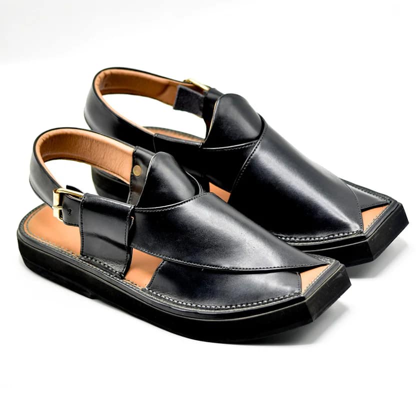 As a mens Black Peshawari chappal, it is versatile enough to complement shalwar kameez, kurta, or even jeans. The deep black tone enhances its sophisticated appeal, making it ideal for weddings, Friday prayers, cultural gatherings, and professional settings.