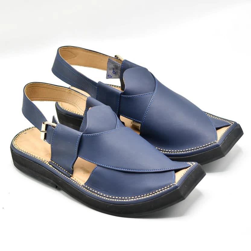 Charsadda Peshawari KPT-SIG-BLU – Premium Handmade Blue Footwear