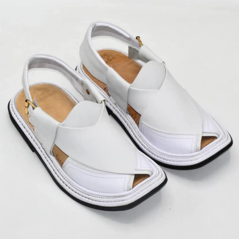 The Charsadda Peshawari White T Gear (Premium) is a handmade Peshawari chappal designed for men who appreciate authentic style, comfort, and durability. Crafted by skilled artisans in Charsadda, this chappal combines traditional craftsmanship with a modern touch, making it perfect for daily wear, formal occasions, and cultural events.