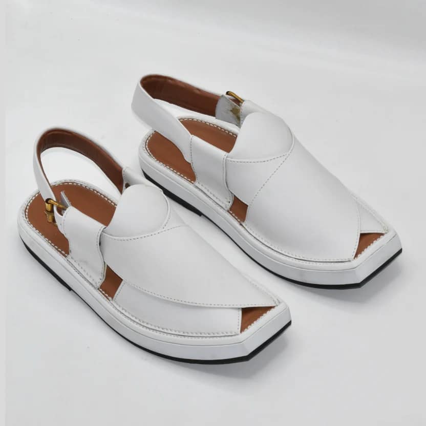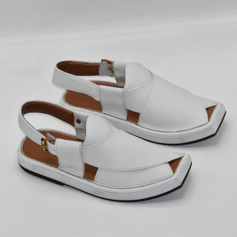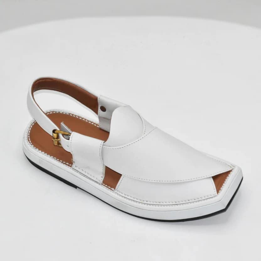 The premium Peshawari chappal construction delivers elegance without compromising on practicality. Its traditional Peshawari chappal silhouette preserves the ethnic heritage of Charsadda footwear while the white color adds a modern, versatile touch. Perfectly pairing with shalwar kameez, jeans, or semi-formal attire, it is a must-have for men seeking both comfort and style.
