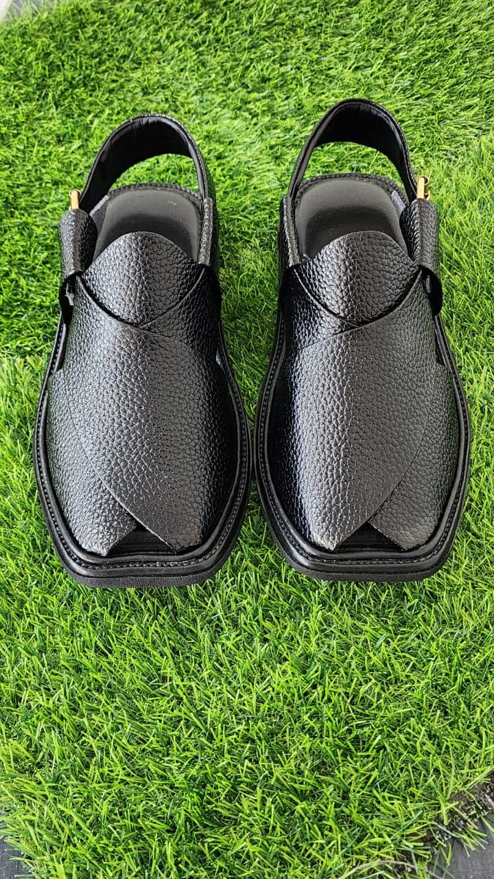 Whether attending weddings, Eid celebrations, or casual outings, this traditional Peshawari chappal ensures you walk with confidence. The black finish complements formal and casual outfits alike, making it highly versatile.